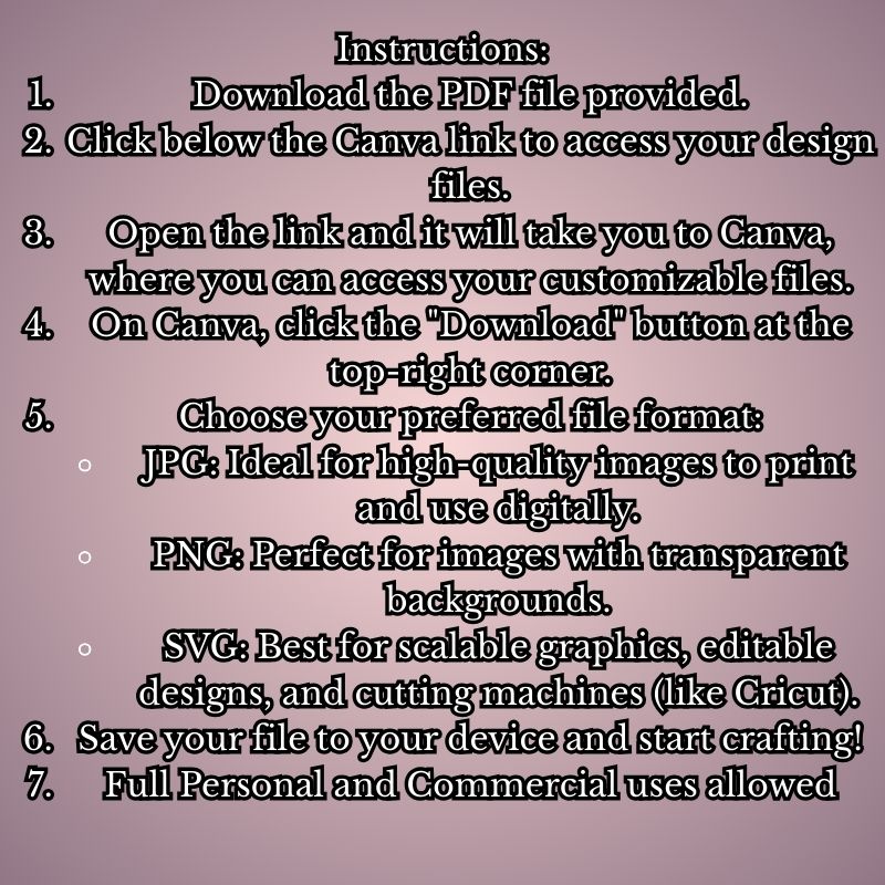 5 files containing 100+ printable images (JPG, PNG, SVG you choose on canva your preferred file type)